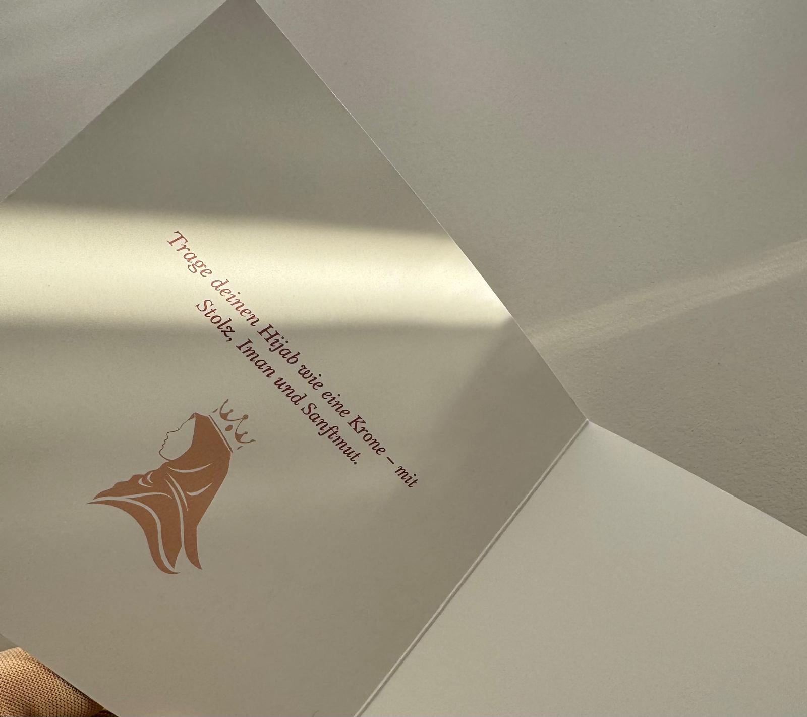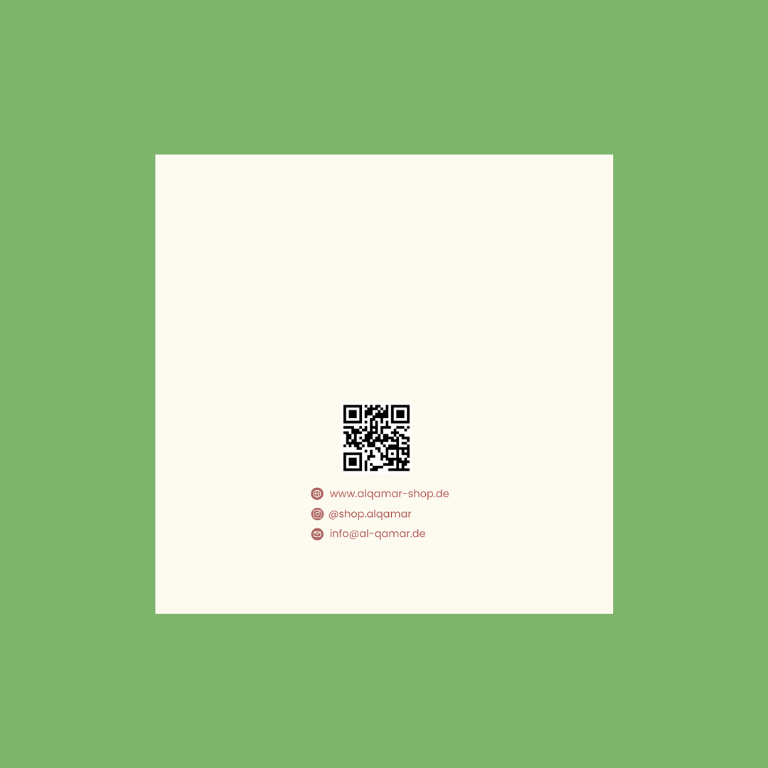 Feiere einen besonderen Anlass mit unserer eleganten „Hijab Mubarak“ Grußkarte. Die Karte wird auf ein Format von 12,0 cm x 12,0 cm gefalzt, besitzt einen vertikalen Mittelfalz und bietet somit 4 gestaltbare Seiten.